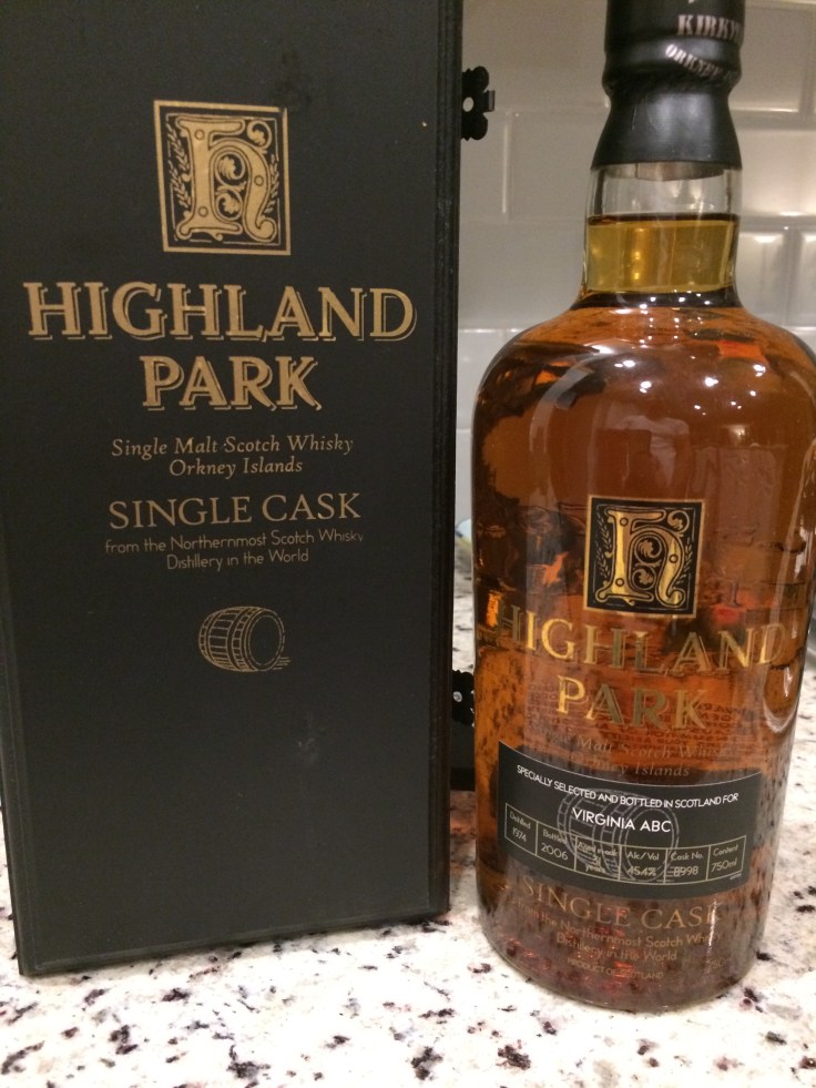On a glorious December day I found myself bargain shopping at the local liquor store. Special discounts were available that I took advantage of, at the check out I peered past the counter and spotted something unique. It was a bottle of Highland Park, single cask whisky. Oh, and is that on sale? Yes, drastically. Joy.